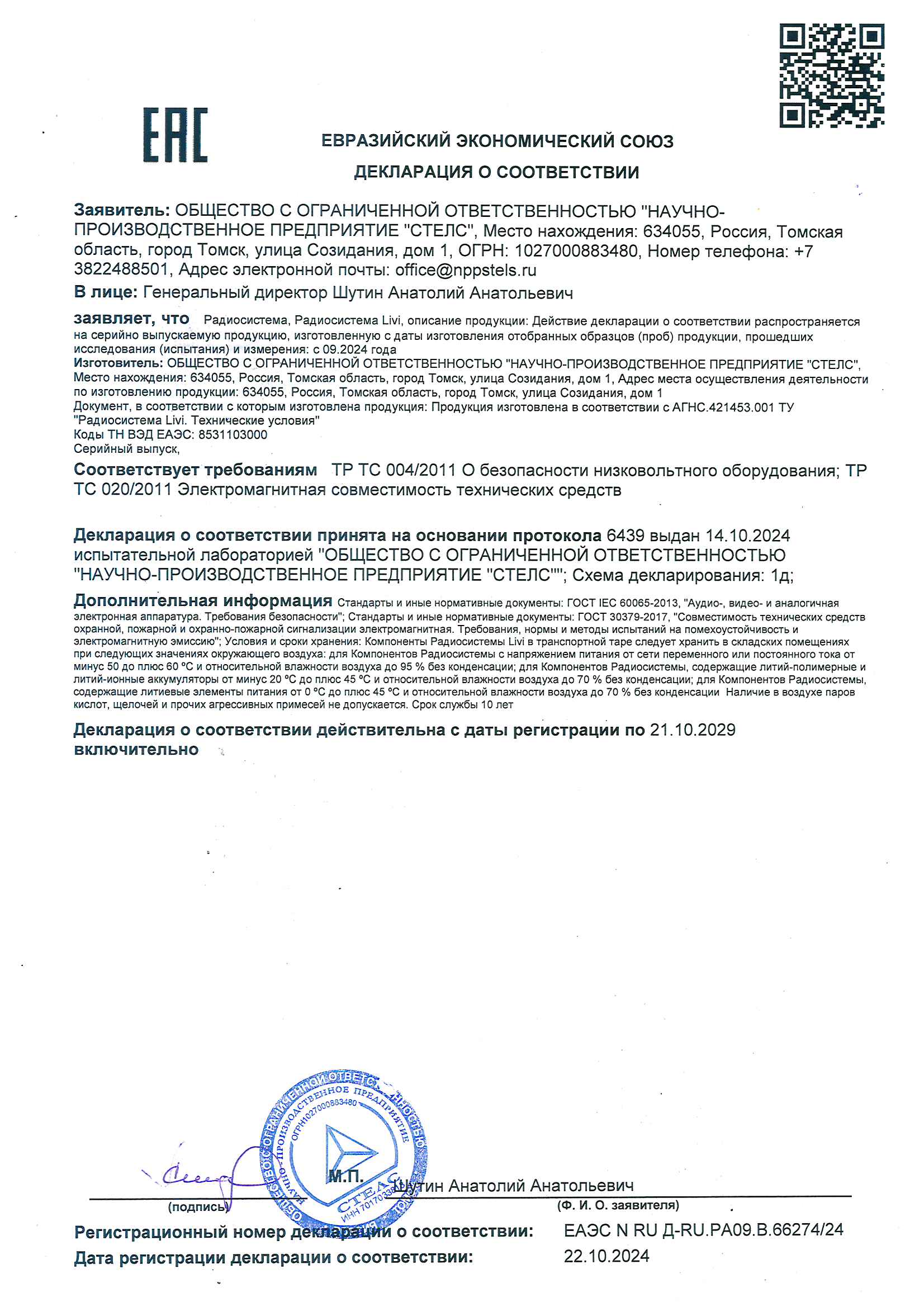 Дальность радиосвязи в прямой видимости | 1000 м |