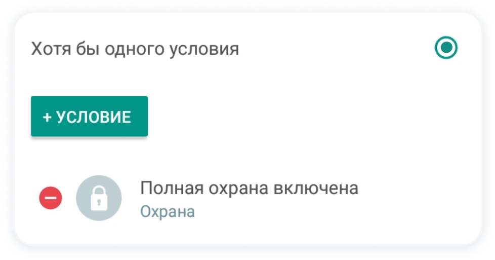 Управляйте охраной отдельных помещений или контролируйте доступ в одно нажатие через приложение или по настройке сценария.